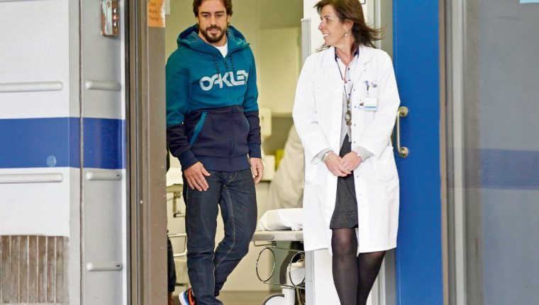 El auto de Alonso se estrelló contra un muro durante ensayos el domingo pasado y el piloto español fue llevado en helicóptero a un hospital, donde permaneció tres días como medida preventiva, sometiéndose a todo tipo de exámenes para descartar lesiones internas. Actualmente reposa en la casa de su familia.