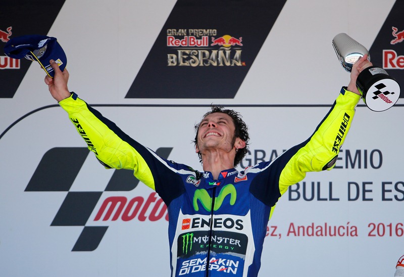 Rossi no se dejó sorprender al apagarse el semáforo rojo y “negoció” en primera posición la curva de final de recta, en donde Jorge Lorenzo (Yamaha YZR M 1) se ganó la segunda posición, por delante de Marc Márquez (Repsol Honda RC 213 V) y Dani Pedrosa, que relegó a la quinta plaza al italiano Andrea Dovizioso (Ducati Desmosedici GP16) para poco después superar su compañero de equipo.