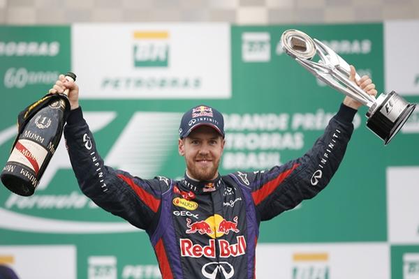 Vettel, que ya se había asegurado su cuarto título consecutivo, fue superado por Nico Rosberg, de Mercedes, al comienzo de la competencia pero recuperó la punta en la segunda vuelta para ganar por segunda vez en Brasil en la que fue la victoria número 39 de su carrera.