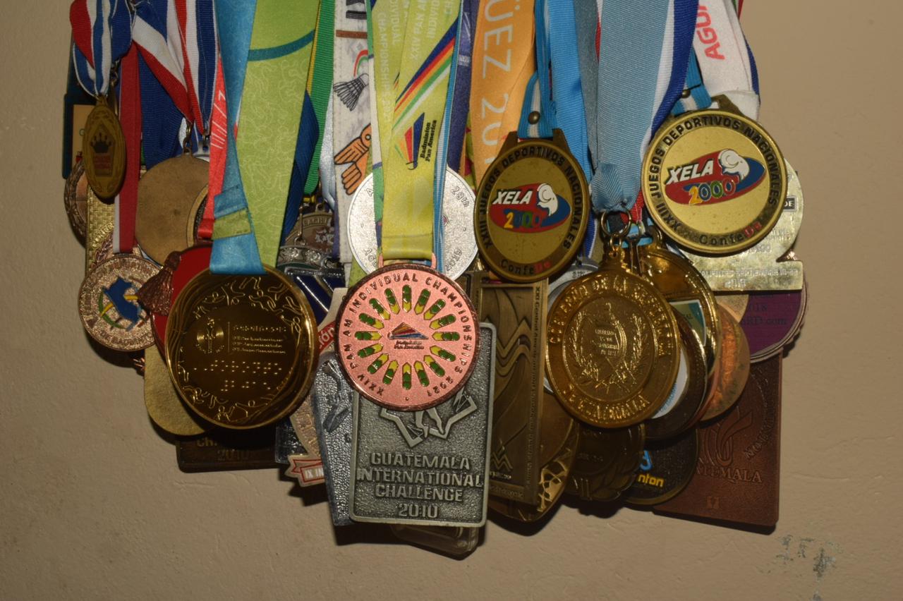 Medallas obtenidas a lo largo de la carrera deportiva de Kevin Cordón. Prensa Libre (Mayra Sosa)