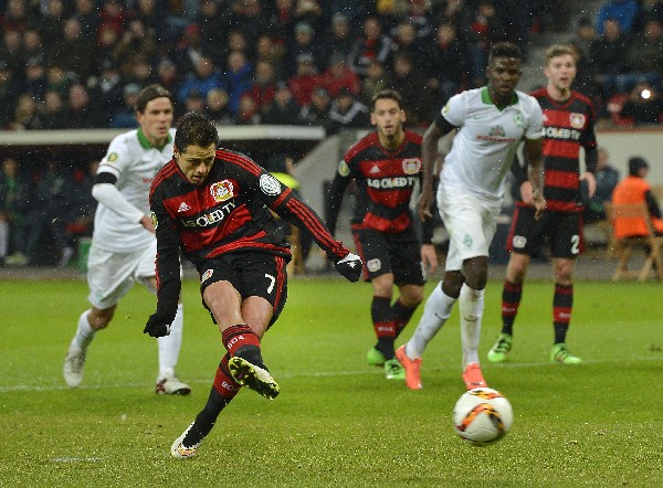 El delantero mexicano abrió de penalti el marcador (minuto 22) , en el que fue su gol 22 en 26 partidos desde su llegada al Leverkusen procedente del Manchester United tras una cesión en el Real Madrid.