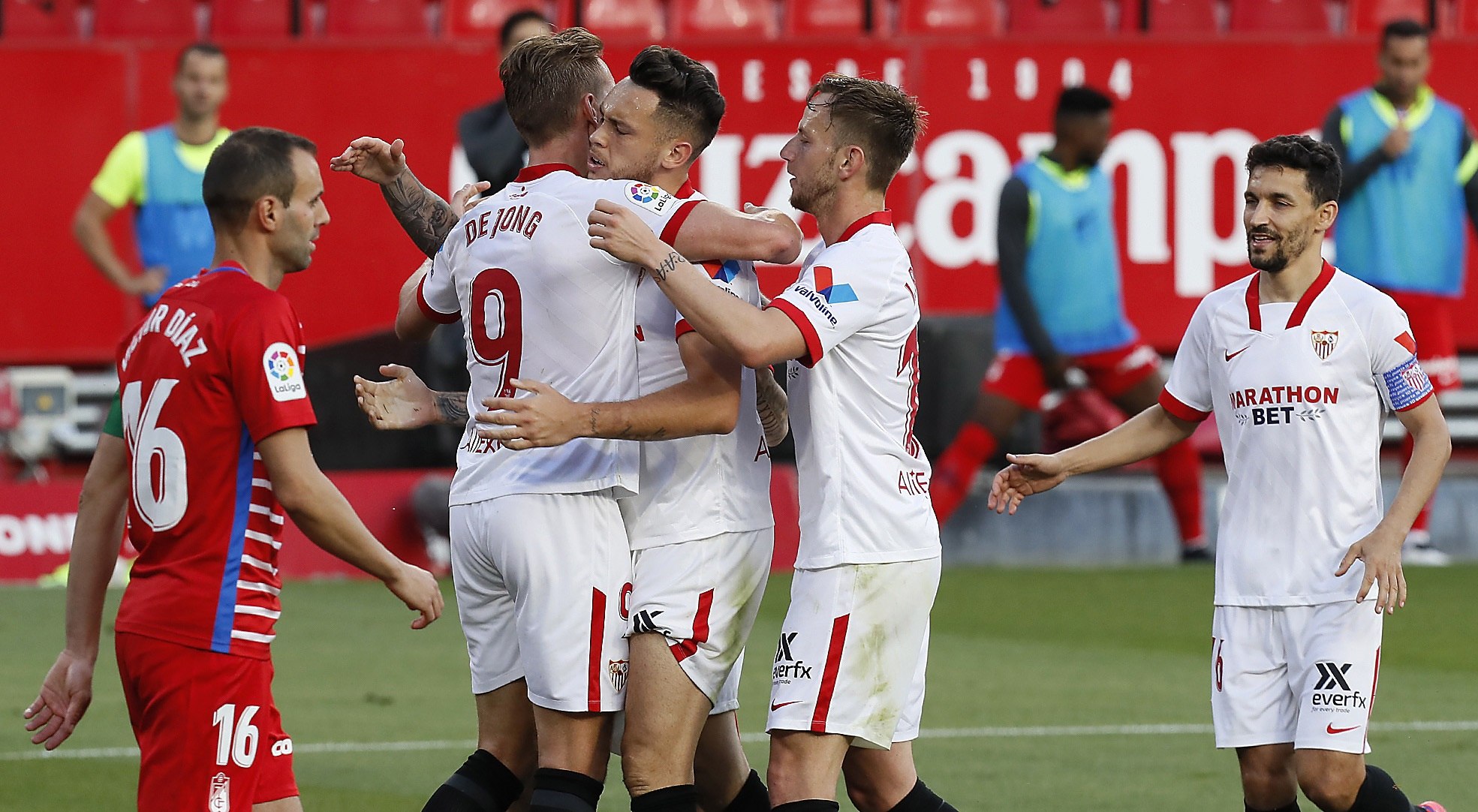 El Sevilla, cuarto con 70 puntos, sigue en la pelea por el título tras vencer este domingo 2-1 al Granada (8).