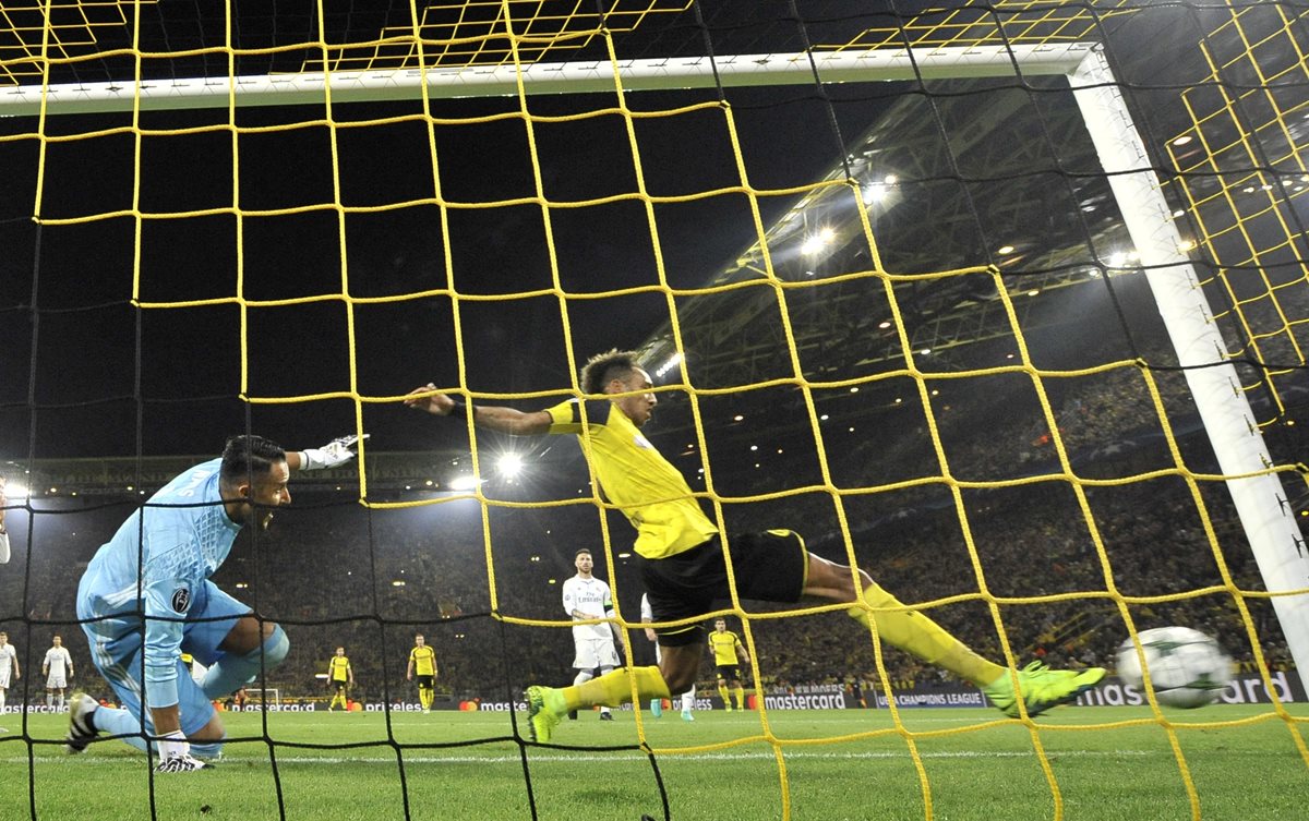 Keylor no pudo evitar la anotación de Pierre-Emerick Aubameyang, que significó el empate 1-1 frente al Real Madrid. (Foto Prensa Libre: AP)