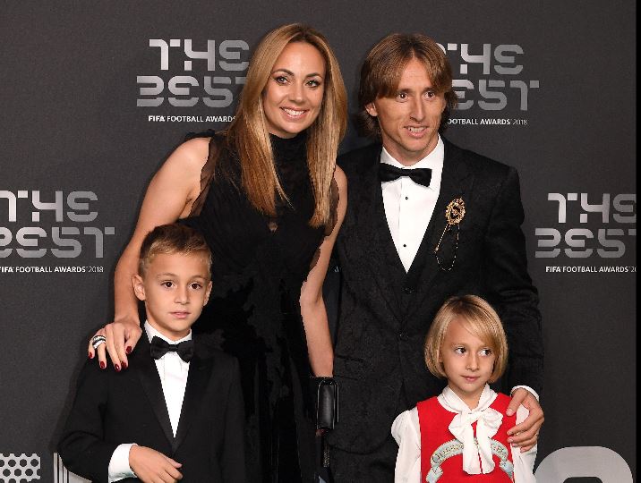 El croata Luka Modric posa junto a su familia. (Foto Prensa Libre: AFP).