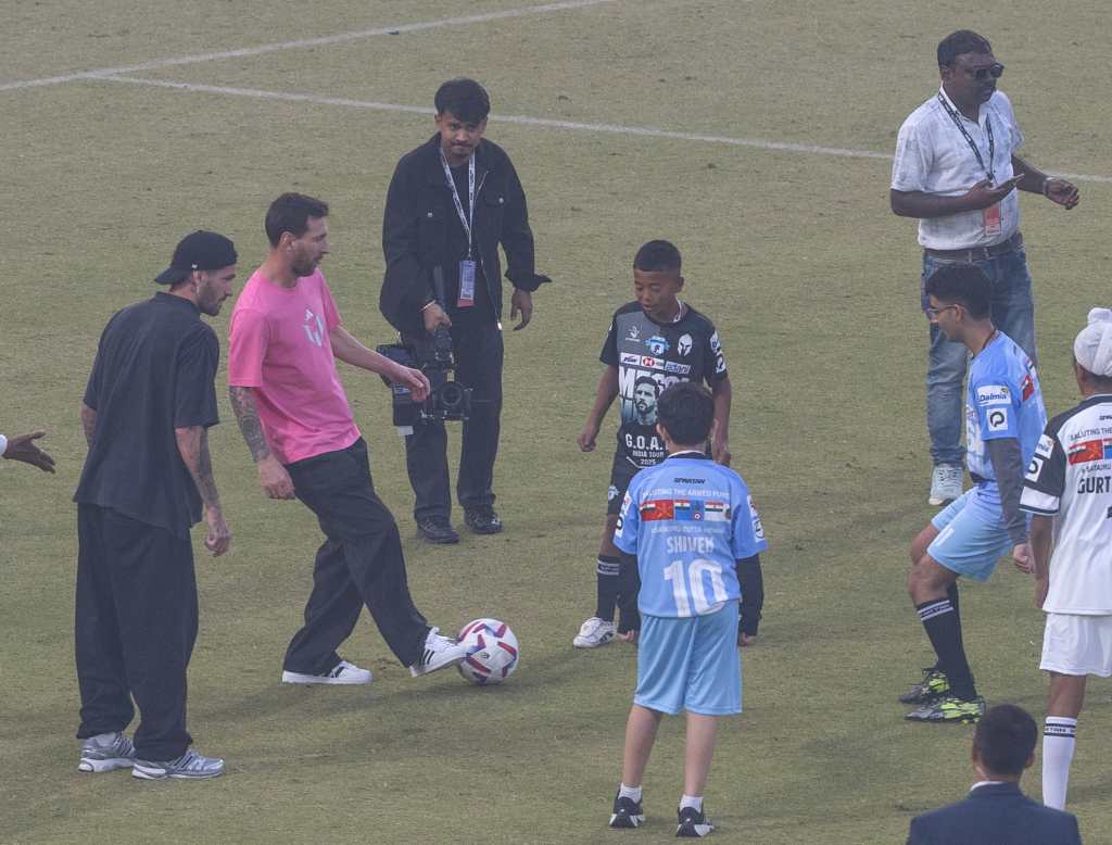 El argentino, acompañado por su compatriota Rodrigo de Paul y el uruguayo Luis Suárez —compañeros en el Inter Miami—, jugó futbol con niños antes de recibir una camiseta de la selección india de manos del presidente del Consejo Internacional de Críquet (ICC), Jay Shah.