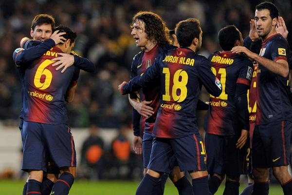 El Barca, que lamentó la lesión de Cesc Fábregas en los primeros minutos, mantuvo su ventaja de seis puntos sobre el Atlético y conservó también el margen de once sobre el Real Madrid, que derrotó 3-2 al Valladolid el sábado.
