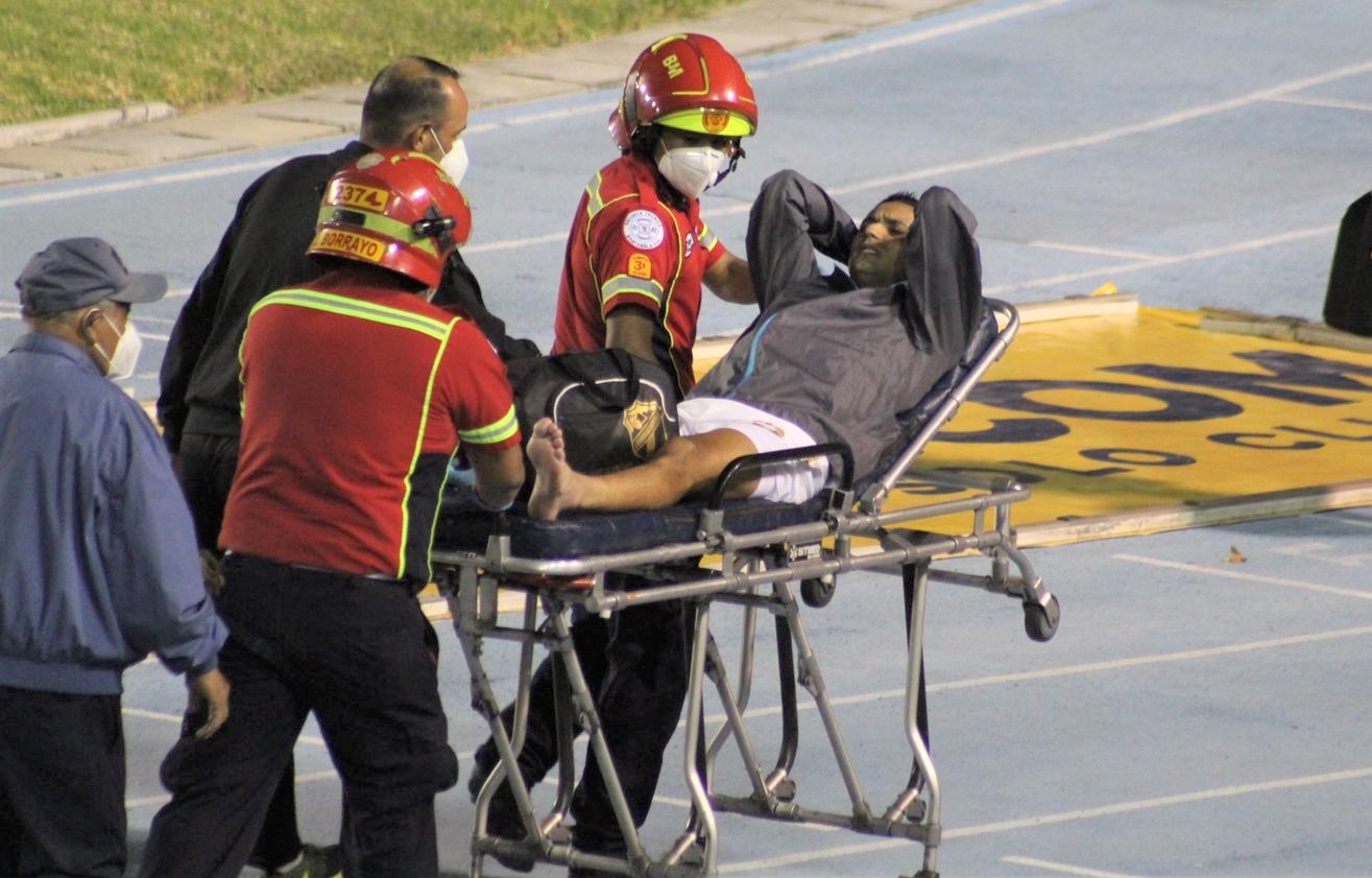 El volante crema poco duró en el encuentro y tuvo que salir en camilla y posteriormente fue llevado a un centro asistencial para hacerle el respectivo estudio.