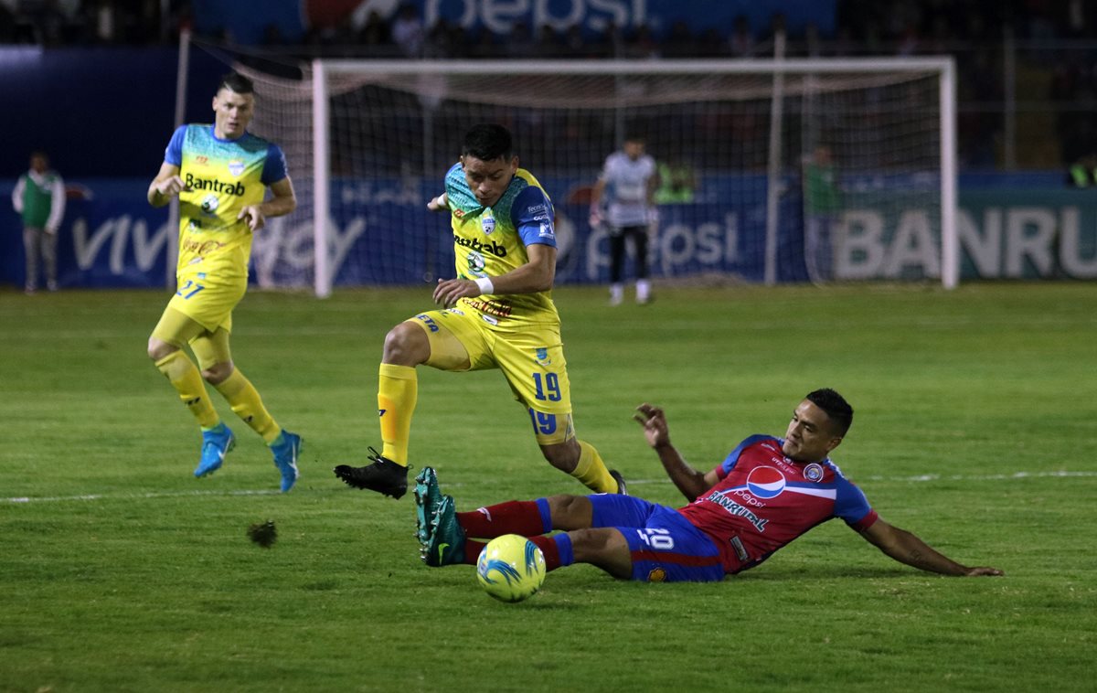 Cobán ganaba con superioridad futbolística a los locales gracias a dos goles de Edi Danilo Guerra. El exjugador de Municipal abrió el marcador por medio de un penalti al minuto 18 y puso el 2-0 con una volea luego de que el balón quedara dividido en el área.
