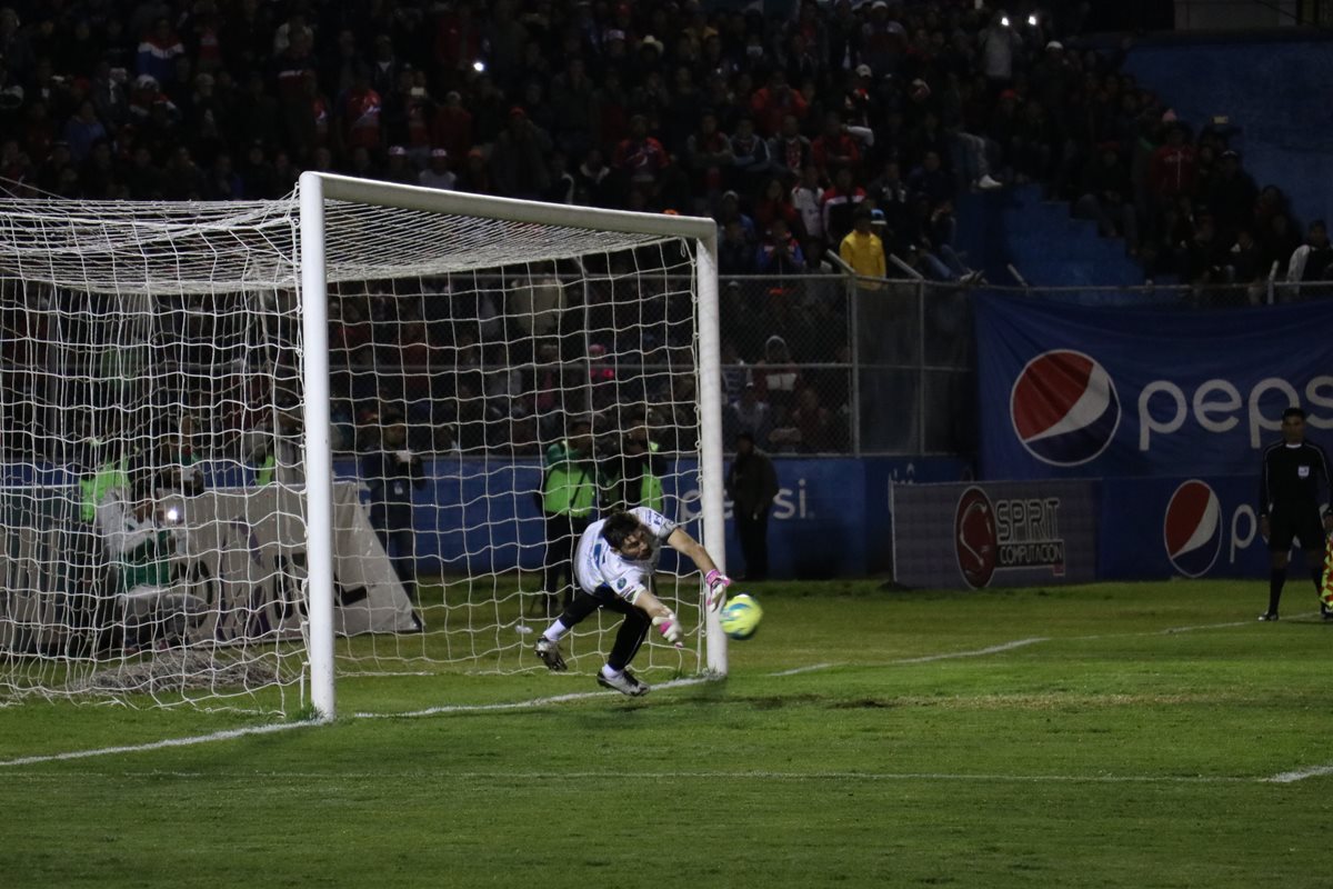 El primer penal fue muy polémico. El defensor de Cobán, Eduardo Soto, chocó con Cristian Albizures y el jugador de los chivos cayó en el área, a lo que el árbitro Mario Escobar, quien tuvo una actuación para el olvido, indicó como pena máxima.