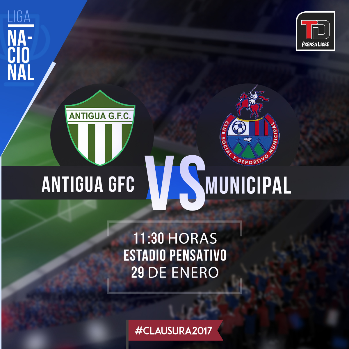 Antigua GFC y Municipal protagonizan el partido más atractivo de la tercera jornada del torneo Clausura 2017, que se dispuará en el estadio Pensativo.