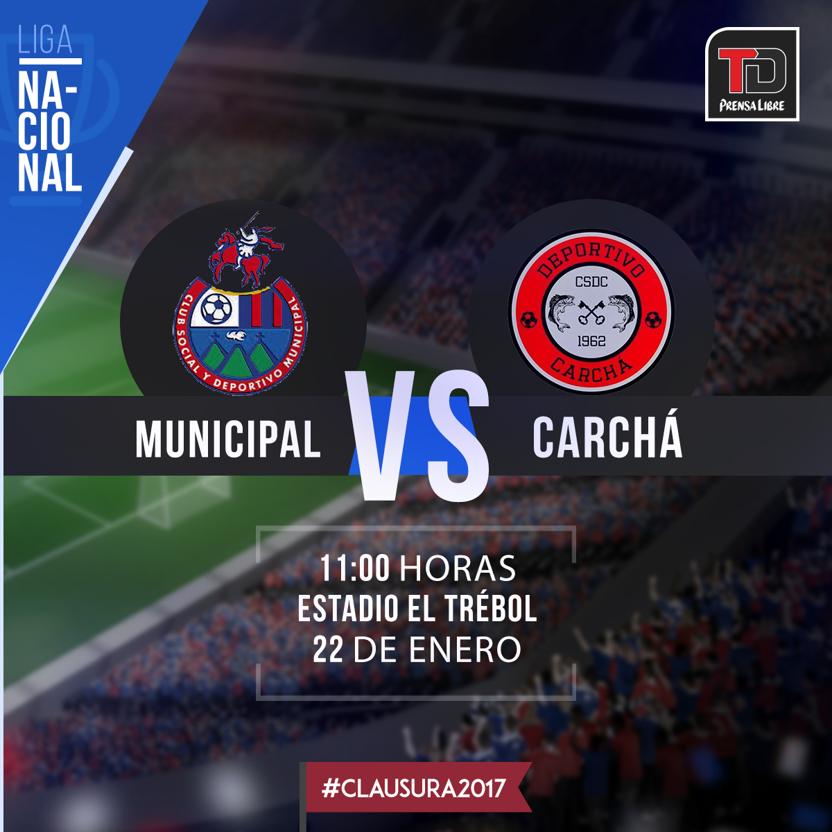 Municipal debuta en casa en el torneo Clausura 2017 y lo hace contra Carchá, en un partido de la segunda fecha del certamen, que se dispuará en El Trébol.