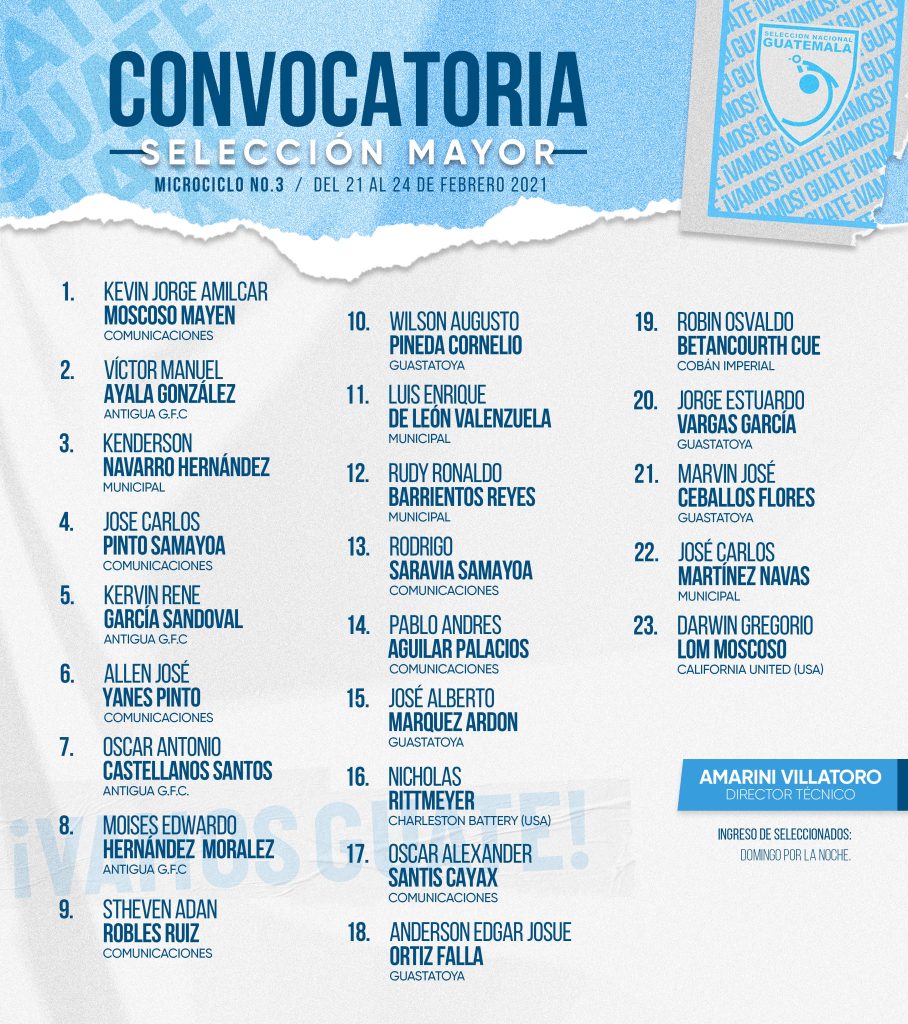 📅Microciclo No.3 – del 21 al 24 de febrero 2021.#VamosGuate #ModoSelección pic.twitter.com/SYScjIN80W— FEDEFUT GUATE (@fedefut_oficial) February 17, 2021