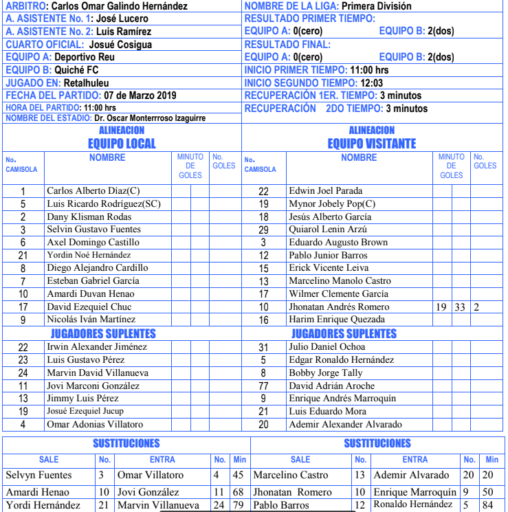 “Informo que cuando nos dirigíamos a los camerinos, una persona no identificada, nos empezó a insultar y a decirnos; si Sololá no gana el partido, de acá no salen vivos”, consigna Herrera en su reporte arbitral.