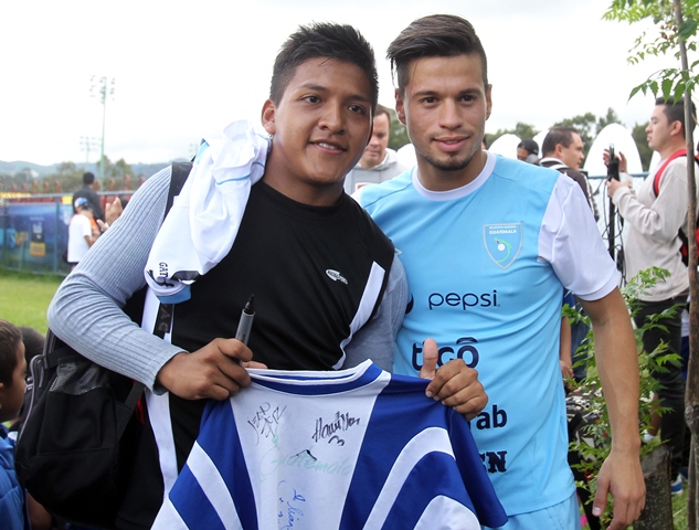 El ambiente de alegría crece en el Proyecto Goal. En la imágen, Stefano Cincotta posa para una fotografía con un aficionado. (Foto Prensa Libre: Edwin Fajardo)