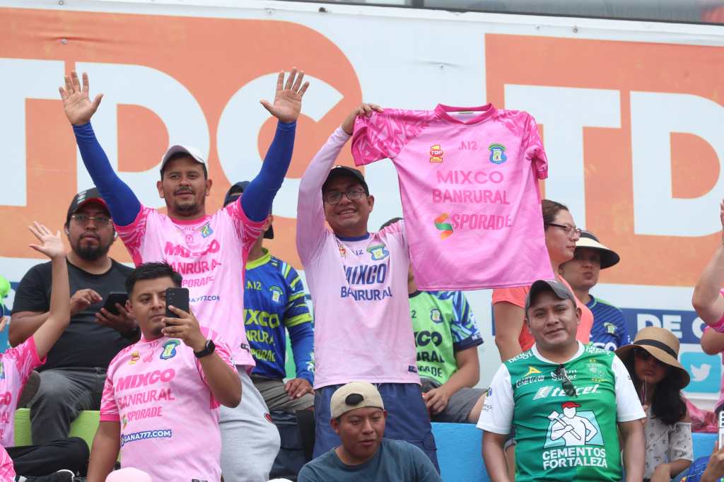 Algunos de los aficionados de Mixco visten la camiseta rosada de su equipo preparados para vivir la primera final de su historia ante Municipal, este sábado a las 3 de la tarde. (Foto Prensa Libre: Esbin García)