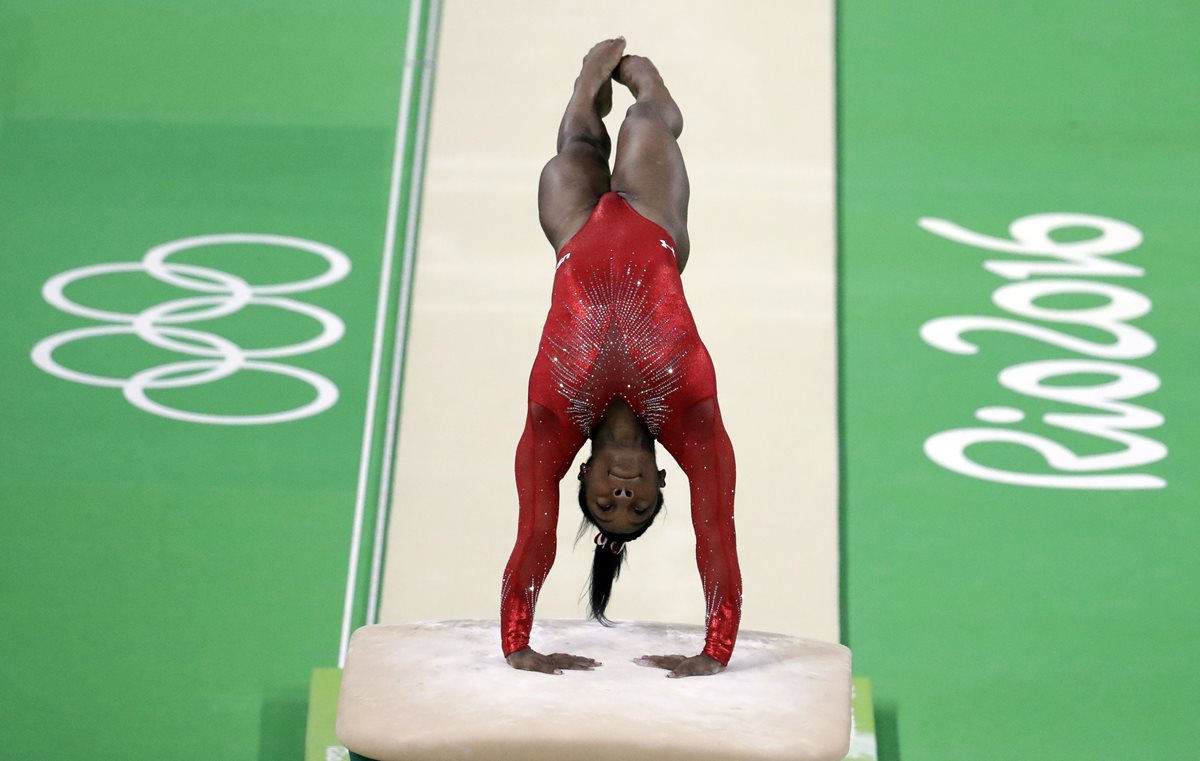 Simone Biles en el salto al potro de los Juegos Olímpicos de Río 2016. (Foto Prensa Libre: AP)