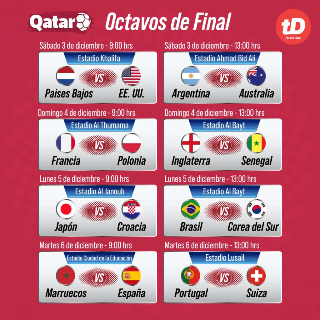 Con sorpresas como la eliminación de Alemania, Uruguay y Bélgica en la primera fase del Mundial de Qatar, el torneo comienza este sábado con las llaves de octavos de final.