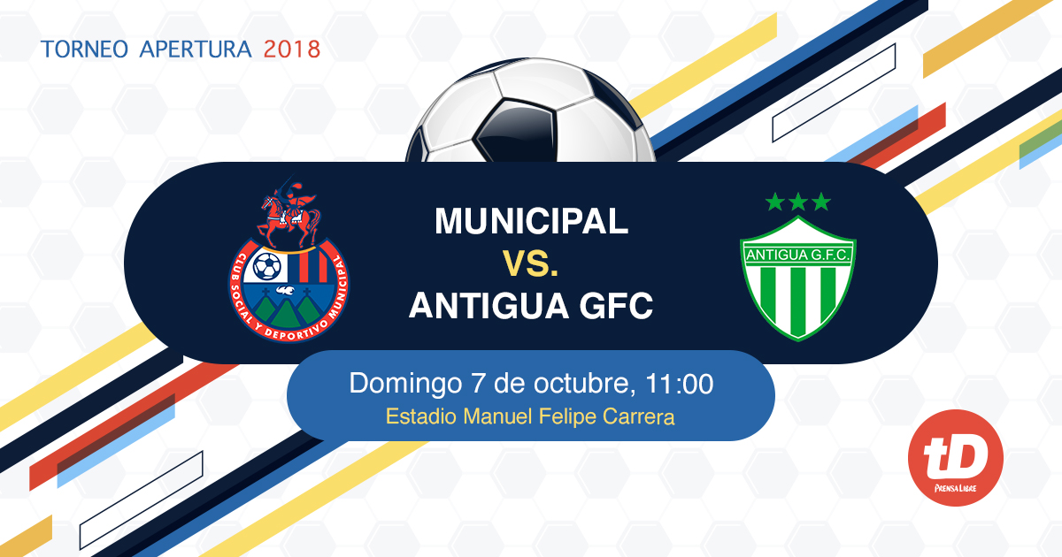 Municipal enfrenta este domingo a Antigua GFC por la jornada 13 del Apertura 2018 en un partido crucial para ambos cuadros. Los rojos buscan escalar posiciones, mientras que el cuadro colonial intentará acercarse al líder Guastatoya.