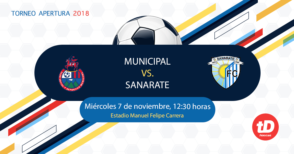 Municipal igualó 1-1 frente a Sanarate en el estadio Manuel Felipe Carrera, por el partido correspondiente a la fecha 19 del torneo Apertura 2018. Los rojos se complicaron su clasificación a la fase final.
