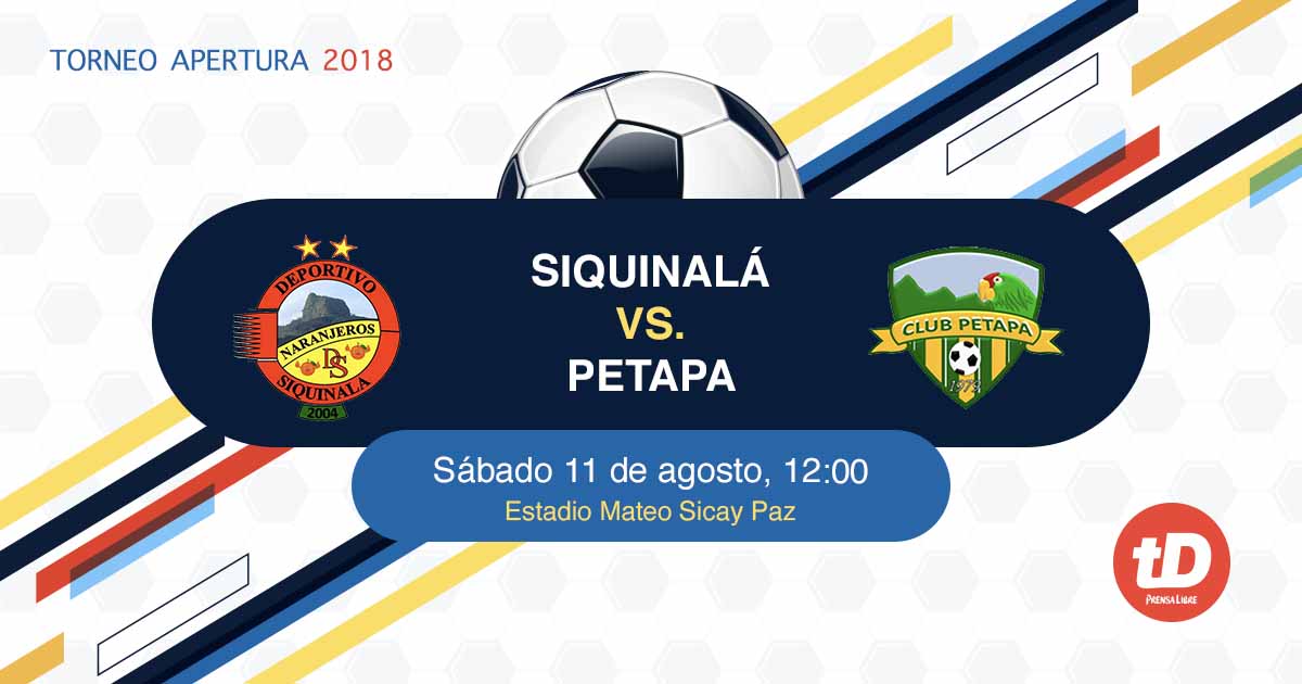 Deportivo Siquinalá buscará recuperar terreno en el Apertura 2018 en el arranque de la jornada 3 del campeonato de la Liga Nacional. Los naranjeros reciben a Deportivo Petapa.