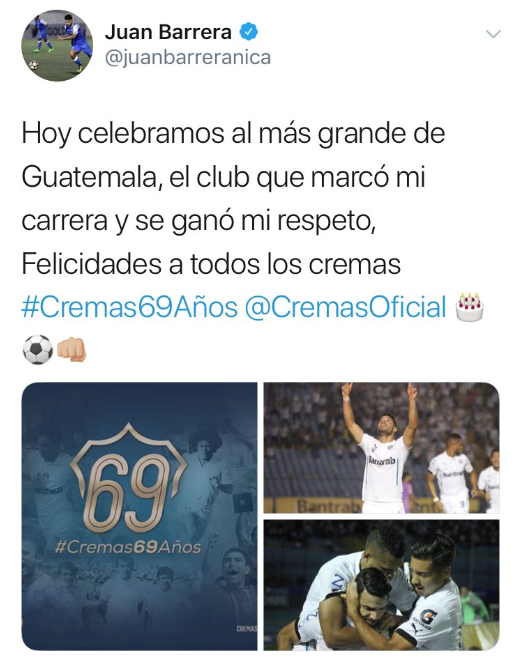 Por su parte Barrera escribió en sus redes sociales la satisfacción de volver al futbol guatemalteco, a la vez que agradeció el club rojo por la oportunidad.
