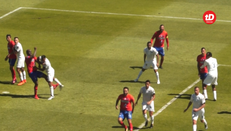 Baloy se aleja, pero solamente para tomar impulso. Instantes después choca contra el defensa nacional impactando contra su brazo derecho, además le lanza una patada.