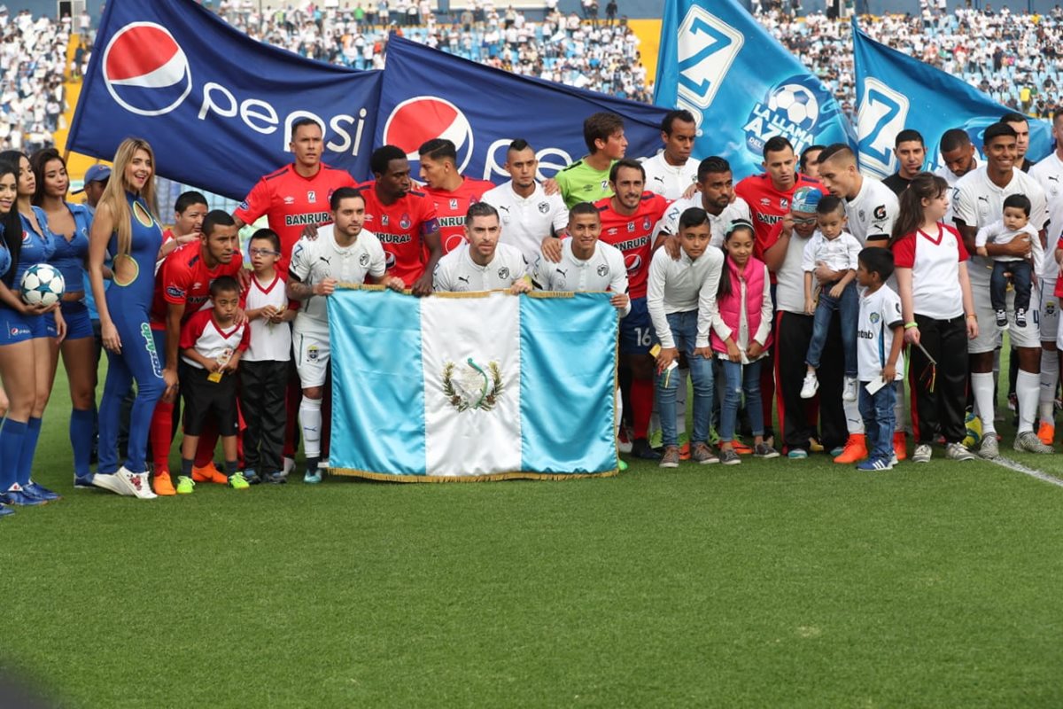 Los jugadores de Municipal y Comunicaciones se unieron para manifestar su descontento por la suspensión de la Fedefut. (Foto Francisco Sánchez)