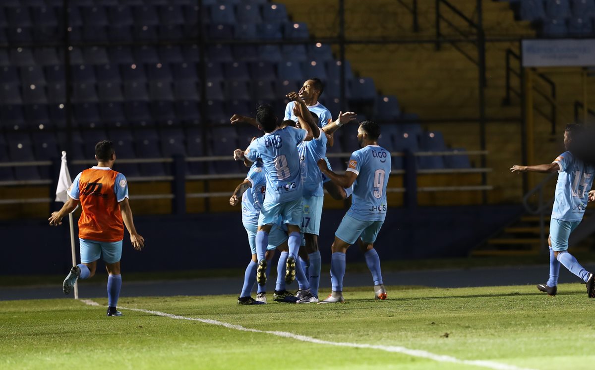 Así festejaron los jugadores de Sanarate el empate ante Comunicaciones. (Foto Prensa Libre: Francisco Sánchez)