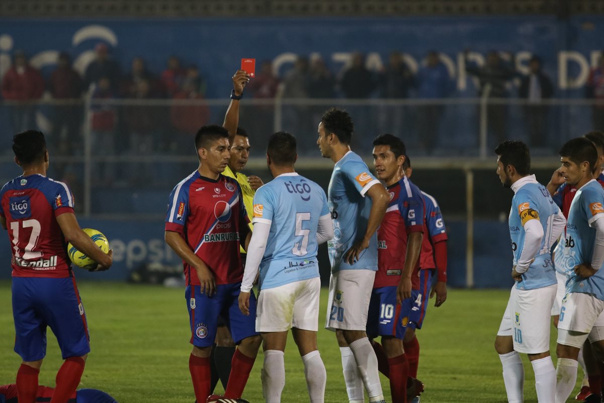 El equipo sanarateco se complicó minutos antes de terminar el primer tiempo cuando se quedó con diez jugadores por la expulsión de Sergio Jucúp, luego de intentar darle un cabezazo a Kristian Guzmán, defensa de Xelajú.