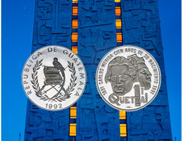 La iniciativa de acuñar monedas conmemorativas en Guatemala se remonta a 1992, cuando el Banco de Guatemala emitió su primera pieza de colección en honor al centenario del nacimiento del artista Carlos Mérida.