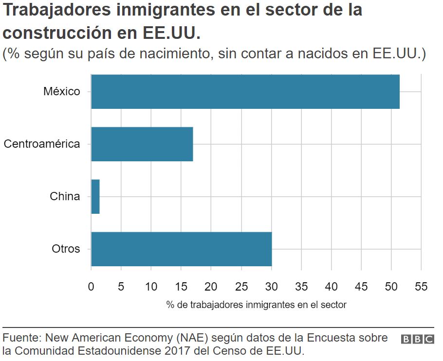 Su presencia es más numerosa en la construcción, donde más de 430.000 centroamericanos conforman el 17% de los trabajadores inmigrantes en esta área (4,2% si se contabiliza también a los empleados nacidos en EE.UU.).