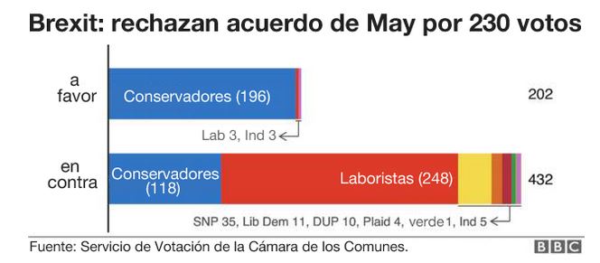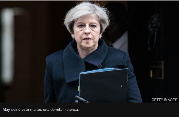- El Parlamento británico rechaza por una amplia mayoría el acuerdo del Brexit en una histórica derrota para Theresa May