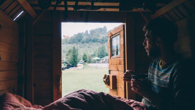 Las casas pequeñas suelen estar sobre ruedas para sortear las regulaciones del gobierno sobre el tamaño mínimo de vivienda habitable. Esto suele hacer sentir a sus habitantes algo desarraigados. En mi propia experiencia al quedarme en una casa pequeña, recuerdo estar siempre consciente de las llantas abajo y del ligero balanceo cada vez que saltaba de la escalera que llevaba a la cama abatible.