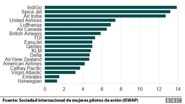 En comparación, al menos el 10% de los pilotos son mujeres en ocho de las principales aerolíneas indias.