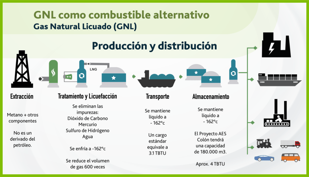 Añadió que esta zona del mundo se encuentra en una ventana única, debido a que cuenta con infraestructura como la Planta AES-Colón, así como el interés de Estados Unidos (uno de los principales productores del mundo en este sector) para que los distintos países de la región accedan a este combustible de forma competitiva y rápida.