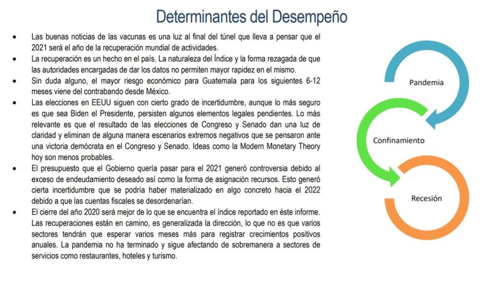 Aparte, indica también refleja crecimiento el ingreso de remesas y el Índice Mensual de Actividad Económica, que confirman que se va por un mejor camino que en meses anteriores, pero se debe mantener ese ritmo, comentó el presidente de la CIG, Eduardo Girón.