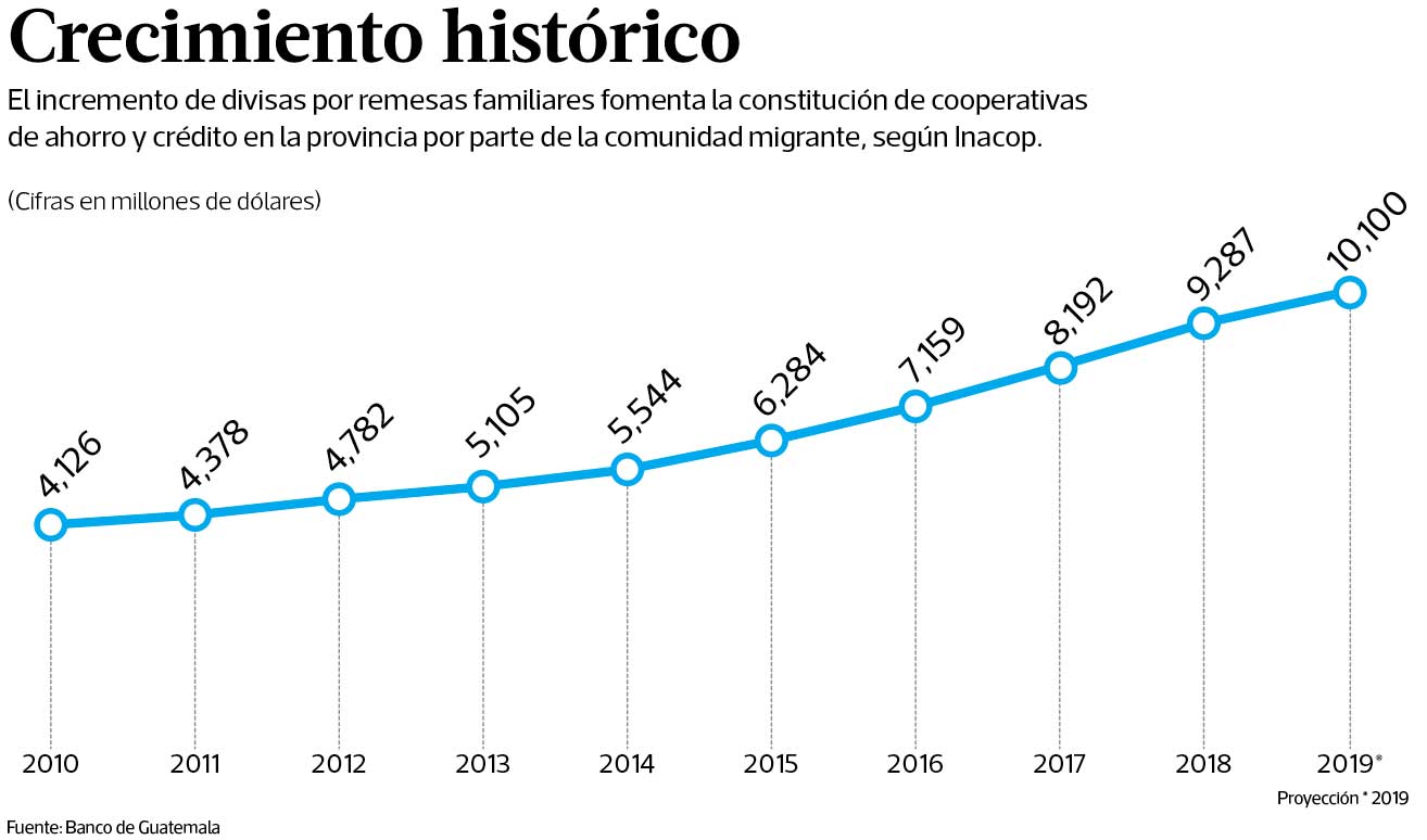La mayor parte de estas cooperativas nuevas operan en el Occidente, Huehuetenango, Totonicapán y San Marcos, para captar las remesas de los migrantes en Estados Unidos.