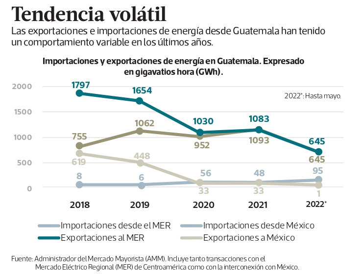 - Datos del Banco de Guatemala (Banguat) reportan que de enero a abril del 2022, el país exportó US$34.4 millones en energía, en tanto importó US$34.6 millones.