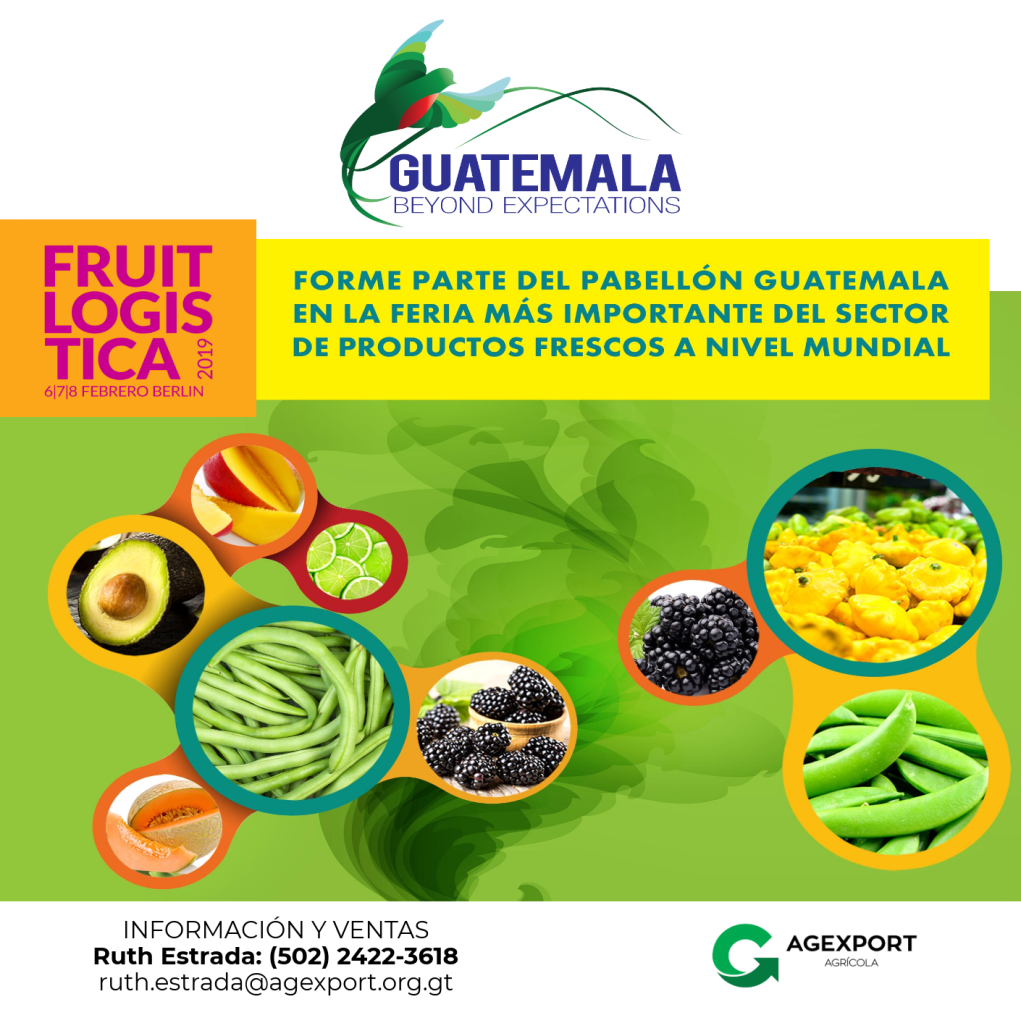 Para más información de cómo participar en Fruit Logistica 2019 puede comunicarse con Ruth Estrada al correo ruth.estrada@agexport.org.gt o al teléfono 2422-3618.