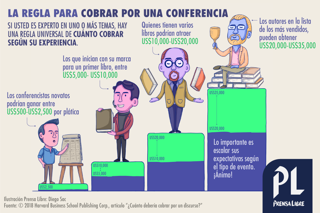 Las tarifas que usted imponga al compartir un poco de su conocimiento varían según la audiencia, la trayectoria profesional y hasta las publicaciones del autor. (Ilustración: Diego Sac)
