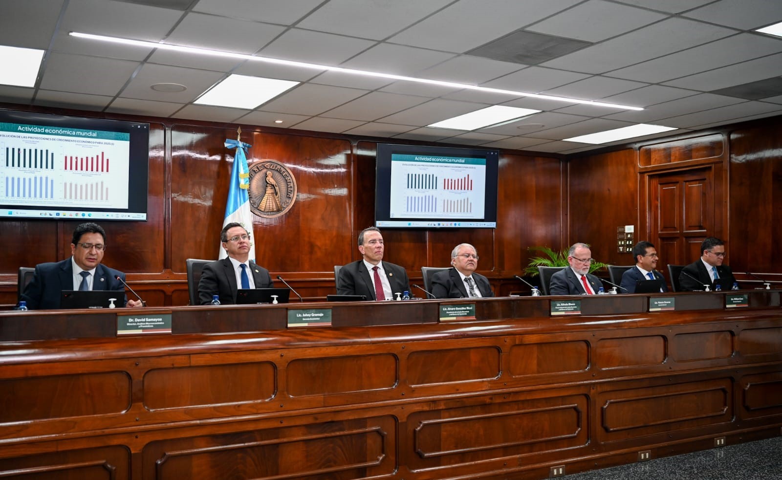Mientras que para 2026 se mantuvo constante en 3.9%, explicaron Álvaro González Ricci, presidente del Banco de Guatemala (Banguat) y de la JM, y Johny Gramajo, gerente económico del Banguat, acompañados de otros funcionarios de la entidad.