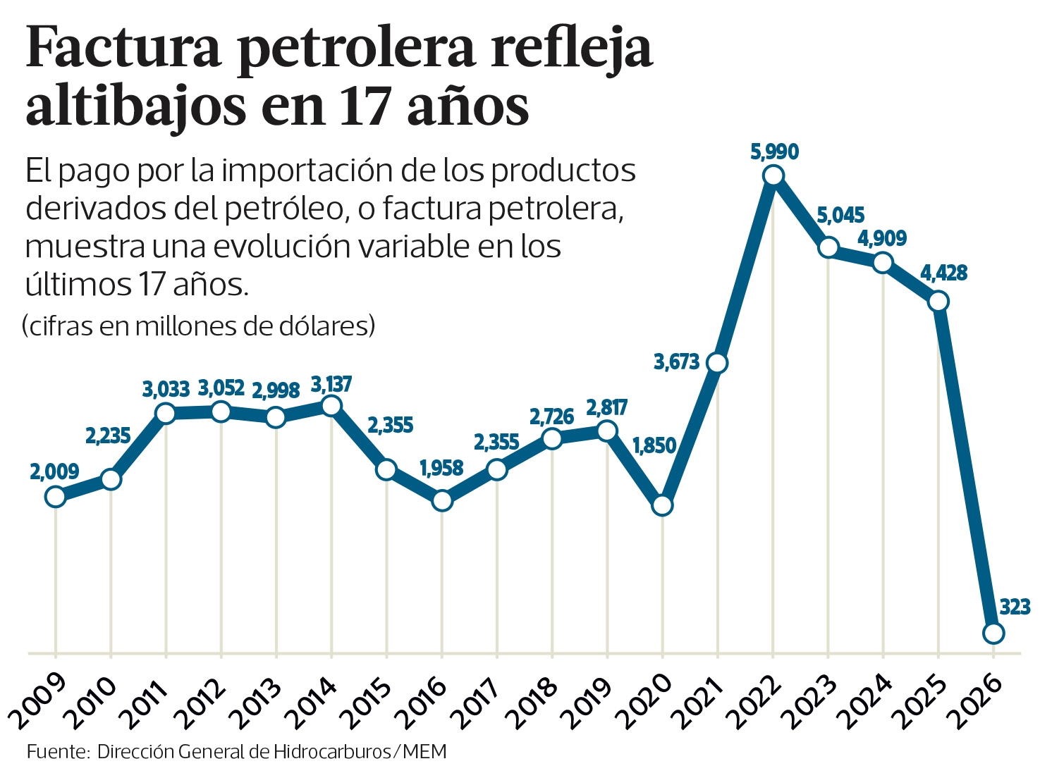 Del 2009 al 2017, el monto de la factura petrolera alcanzó US$23 mil 136 millones.