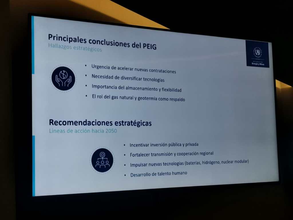 Dentro de las recomendaciones estratégicas hacia el 2050, se incluye el impulso de tecnologías como la nuclear modular, baterías e hidrógeno, añadieron las autoridades del MEM, en la conferencia.
