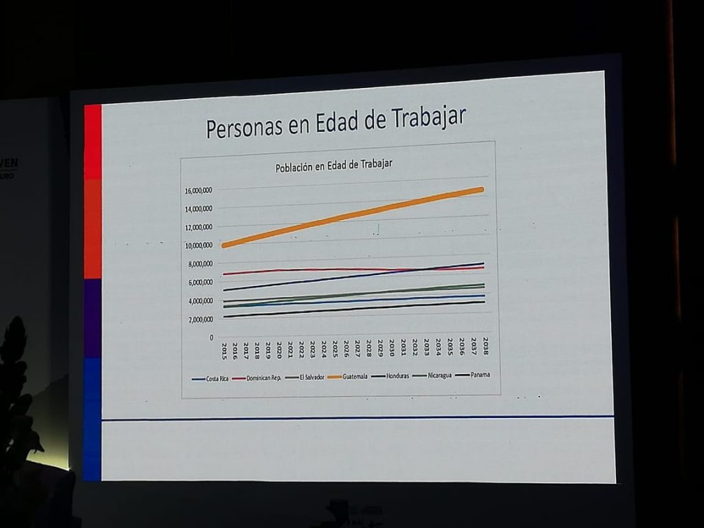 Expuso que el 75% de la población del país son personas menores de 25 años y se les debe apoyar y aprovechar el bono demográfico que posee Guatemala en la actualidad.