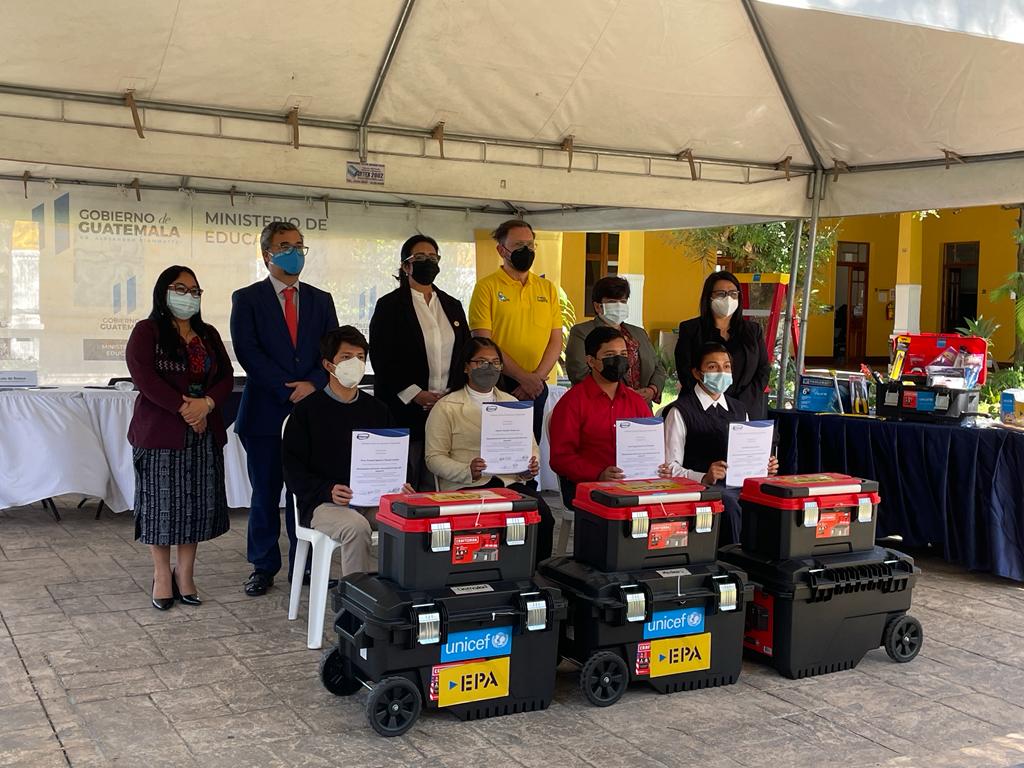 Con la coordinación entre el Fondo de Naciones Unidas para la Infancia y Ferretería Epa, junto al Mineduc, se logró la capacitación de 172 adolescentes de 14 a 18 años. Con estas alianzas estratégicas se reafirma el compromiso de fortalecer la educación de los estudiantes, para que tengan una formación integral que conlleve el desarrollo de competencias en la vida, el trabajo y lograr un mejor futuro en la juventud.