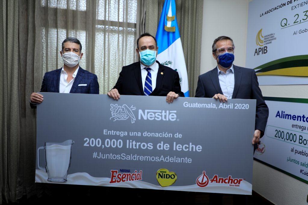 Nestlé entregó 820 mil 800 vasos de leche Anchor y Nido Esencial con alto valor nutricional y 200 computadoras portátiles al Ministerio de Educación para reforzar el programa Aprendo en Casa, que fueron entregados al presidente Alejandro Giammattei.