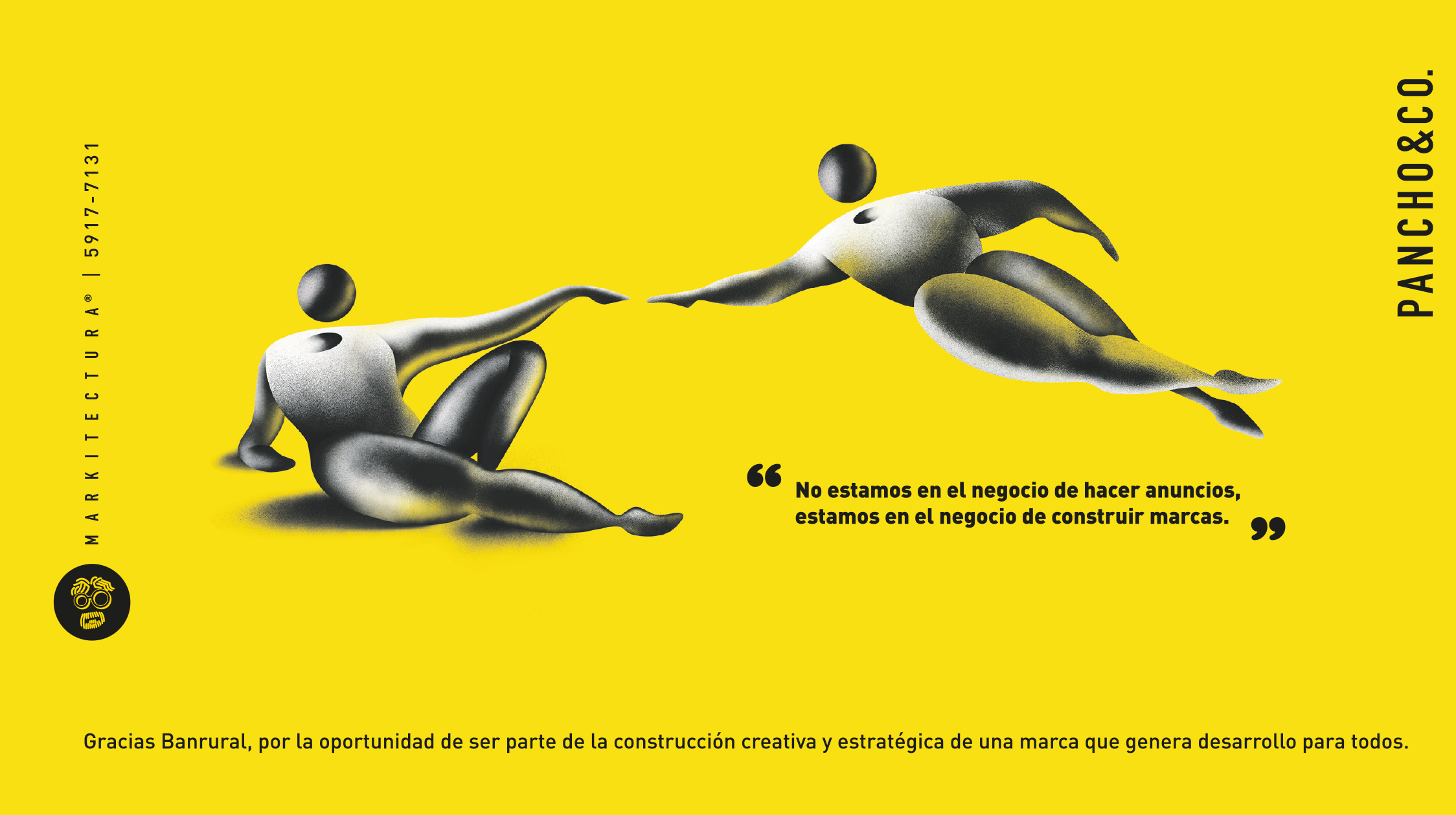 Pancho & Co., la compañía dedicada a la construcción de marcas, como dicen llamar, se siente orgullosa de colaborar con Banrural por más de 20 años, institución bancaria que está de aniversario y que trabaja para mejorar el desarrollo de todo el país, considerándola más que un cliente, un amigo.