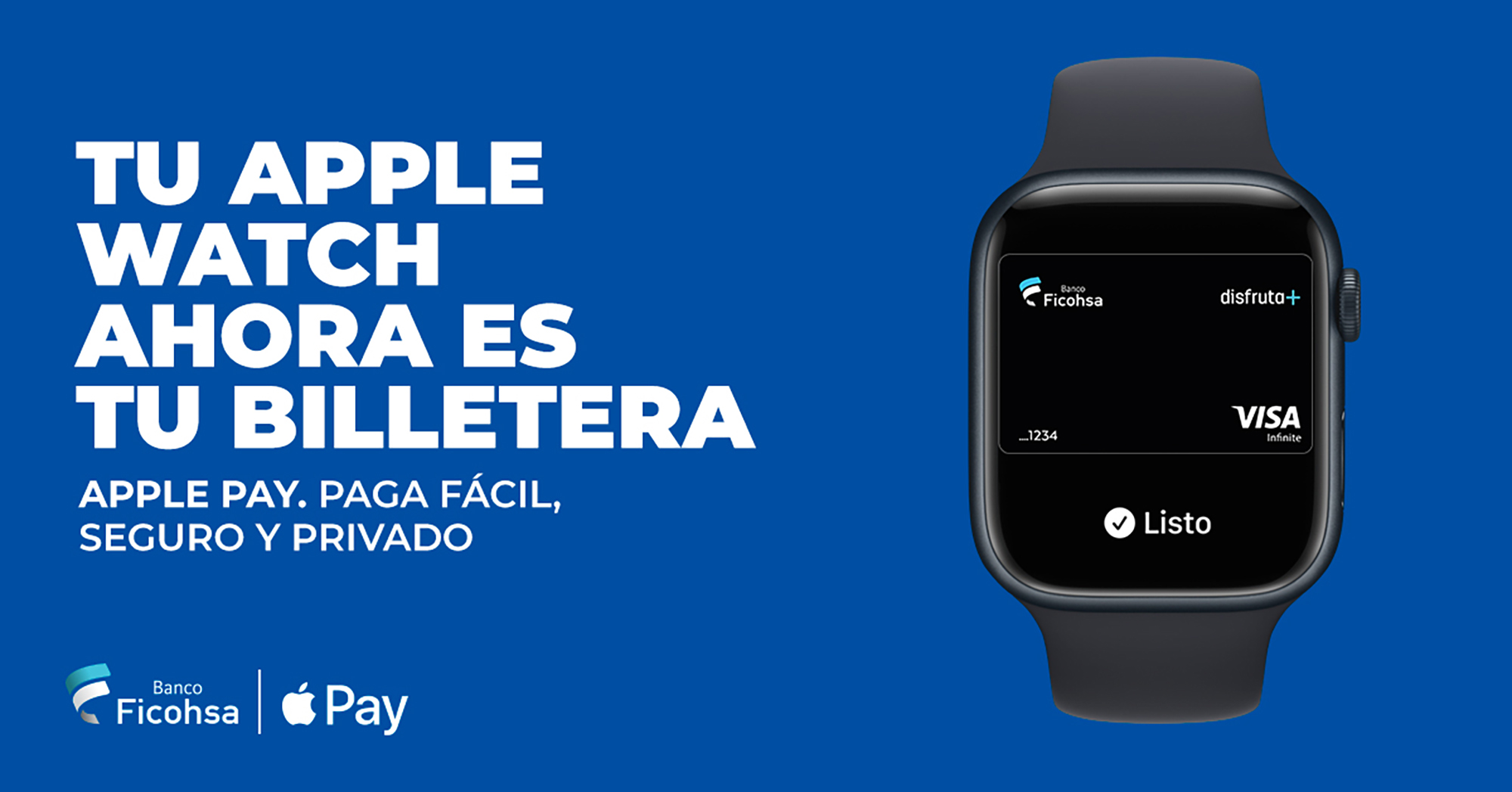 Los clientes que usen este método de pago continuarán recibiendo todas las recompensas y ventajas que ofrecen sus tarjetas Visa Ficohsa. Para más información sobre Apple Pay, visita ficohsa.com/gt.