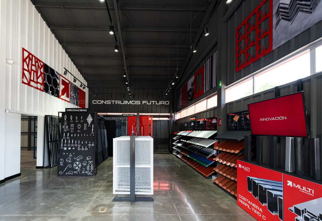 Dentro de este entorno innovador, han establecido un showroom que presenta todos sus productos de acero, Tuboacero, todo en tubos y costaneras; Decoacero, accesorios forjados, puertas láminas desplegables y cortes láser; Mayacero, materiales de construcción como varillas y alambre espigado, entre otros; Techoacero, toda la gama de láminas para techos y accesorios; y Megacero relacionado a estructuras.