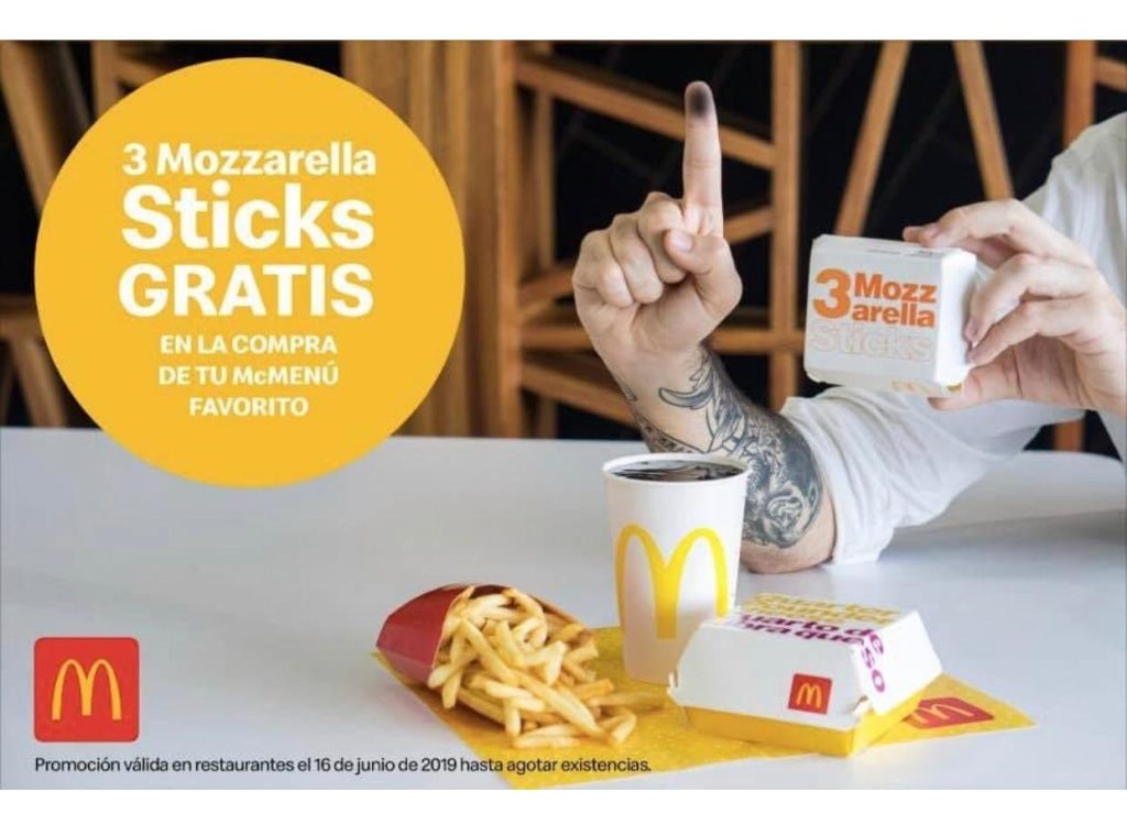 En la compra de cualquier menú, McDonalds le dará 3 Mozarellas gratis.